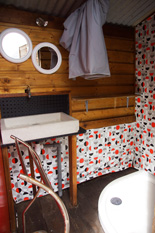 | - Climatisation naturelle grâce à une grande ouverture (de type moustiquaire) derrière le lit. | - Sanitaires indépendants: Douche. Lavabo. Toilettes sèches. |
